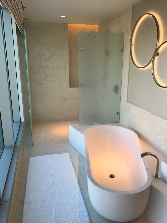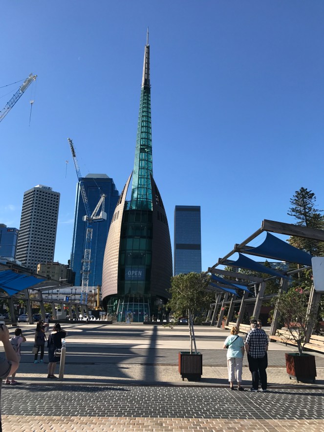 2. Your room is gynormous! And, that tub and shower—open to the world yet no one to peek at you. And, you said your suite of rooms is even larger than your own home. Wow! I can see why Perth reminds you of San Diego except that there are way more tall buildings in Perth. I was particularly fascinated by that interesting structure/sculpture/building that looks like two very large leaves…or is that part of the building that appears in the center of the sculpture? Beautiful and fascinating.