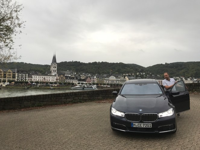 So here we are – along the north side of the Rhine by Boppard in our BMW 750Li diesel.