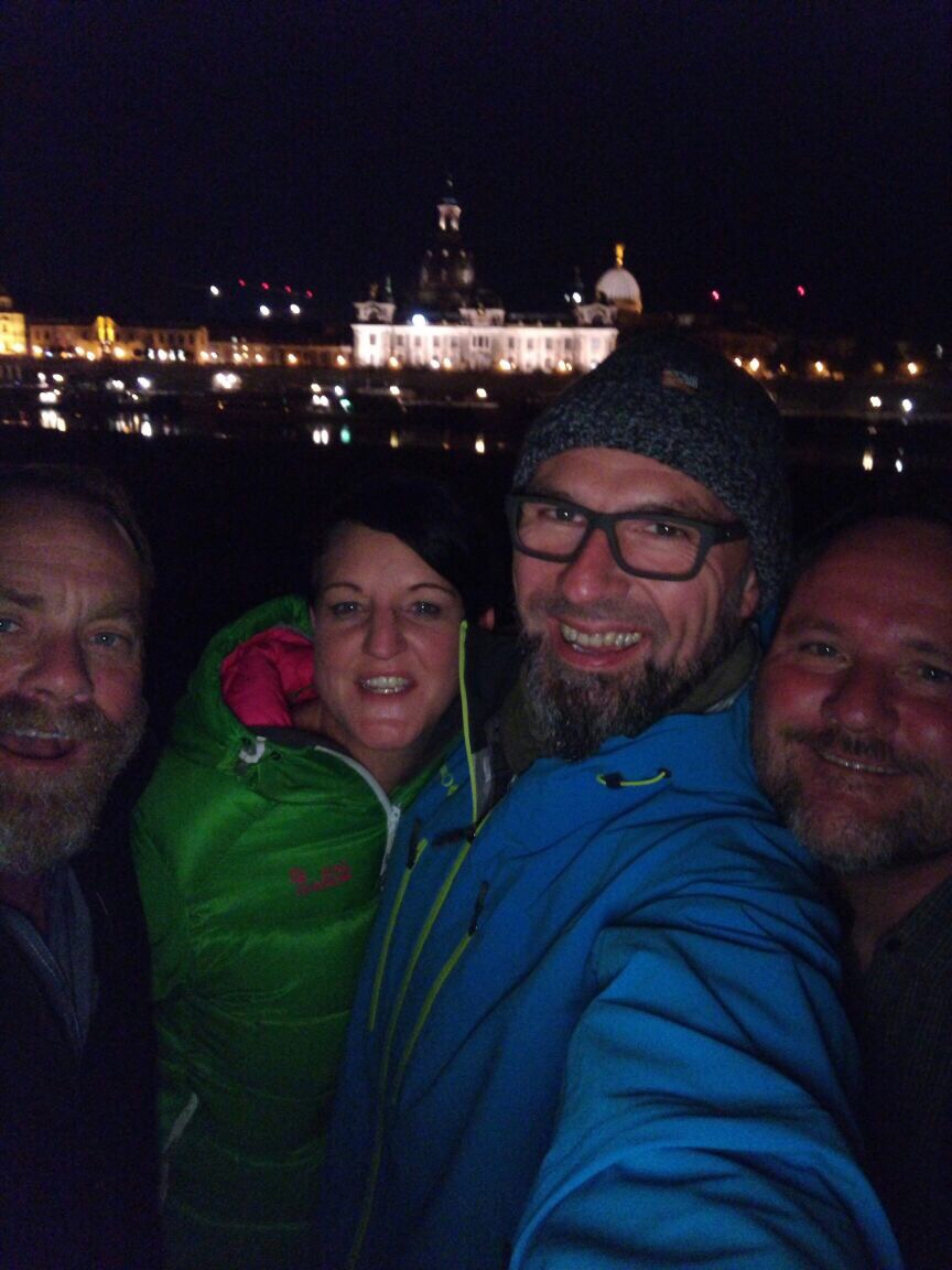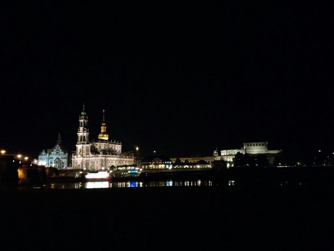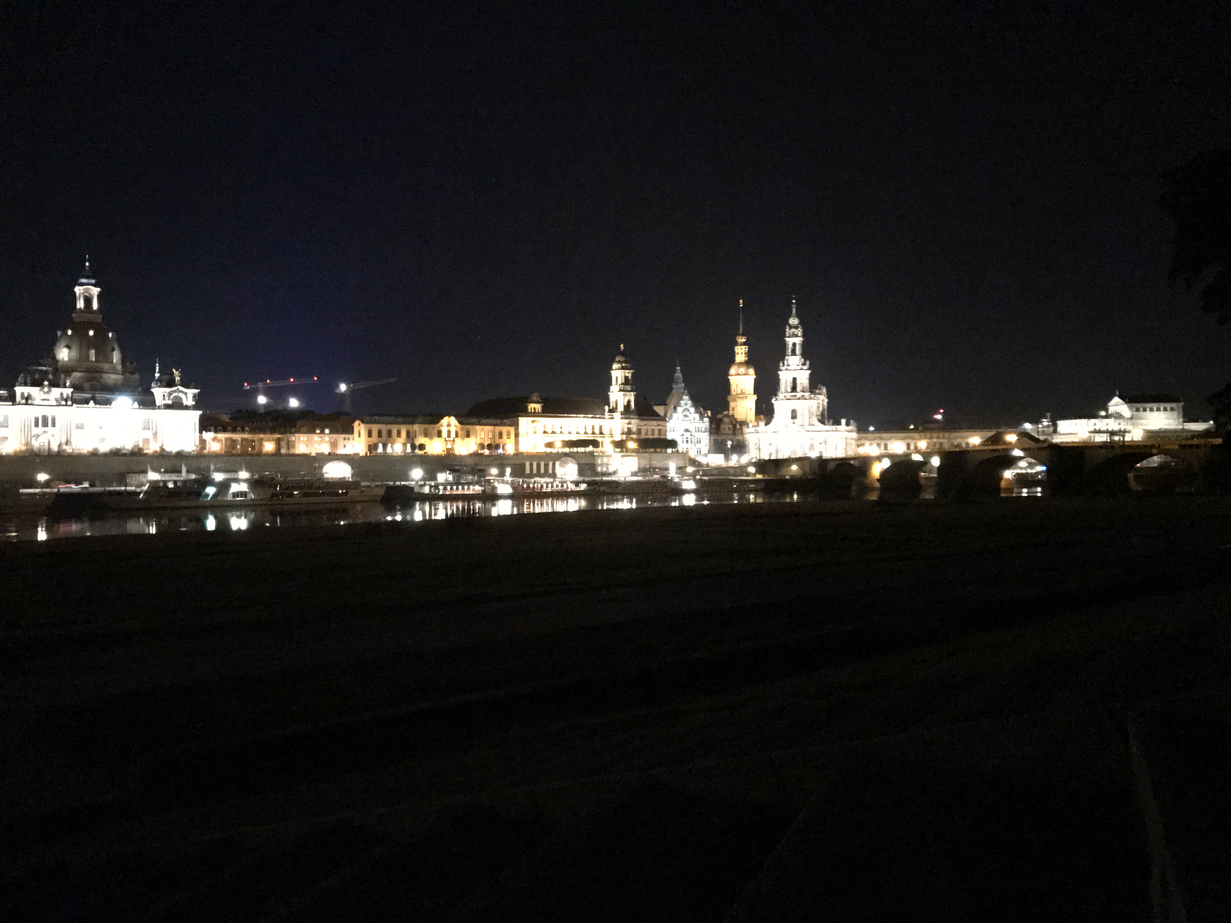 One last night in Dresden. We walked across the Elbe river to the finance ministry and sat on the steps, looking over the city by night. It was a mild late summer evening in great company.