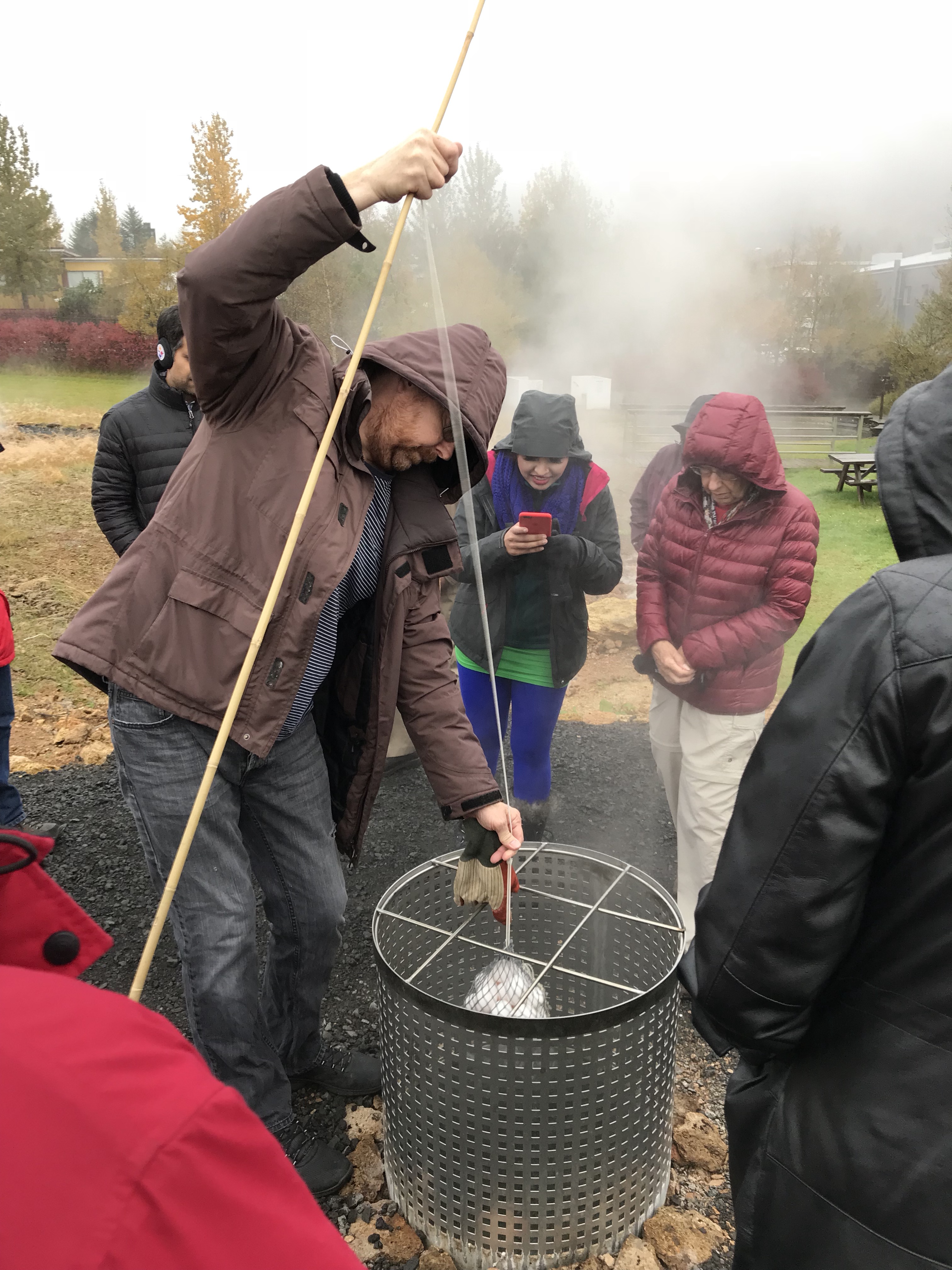Before we reached the falls, our tour stopped at a geothermal complex to experience naturally cooked eggs and lava bread baked solely with steam. Quite the experience to watch the bubbling water cook eggs.