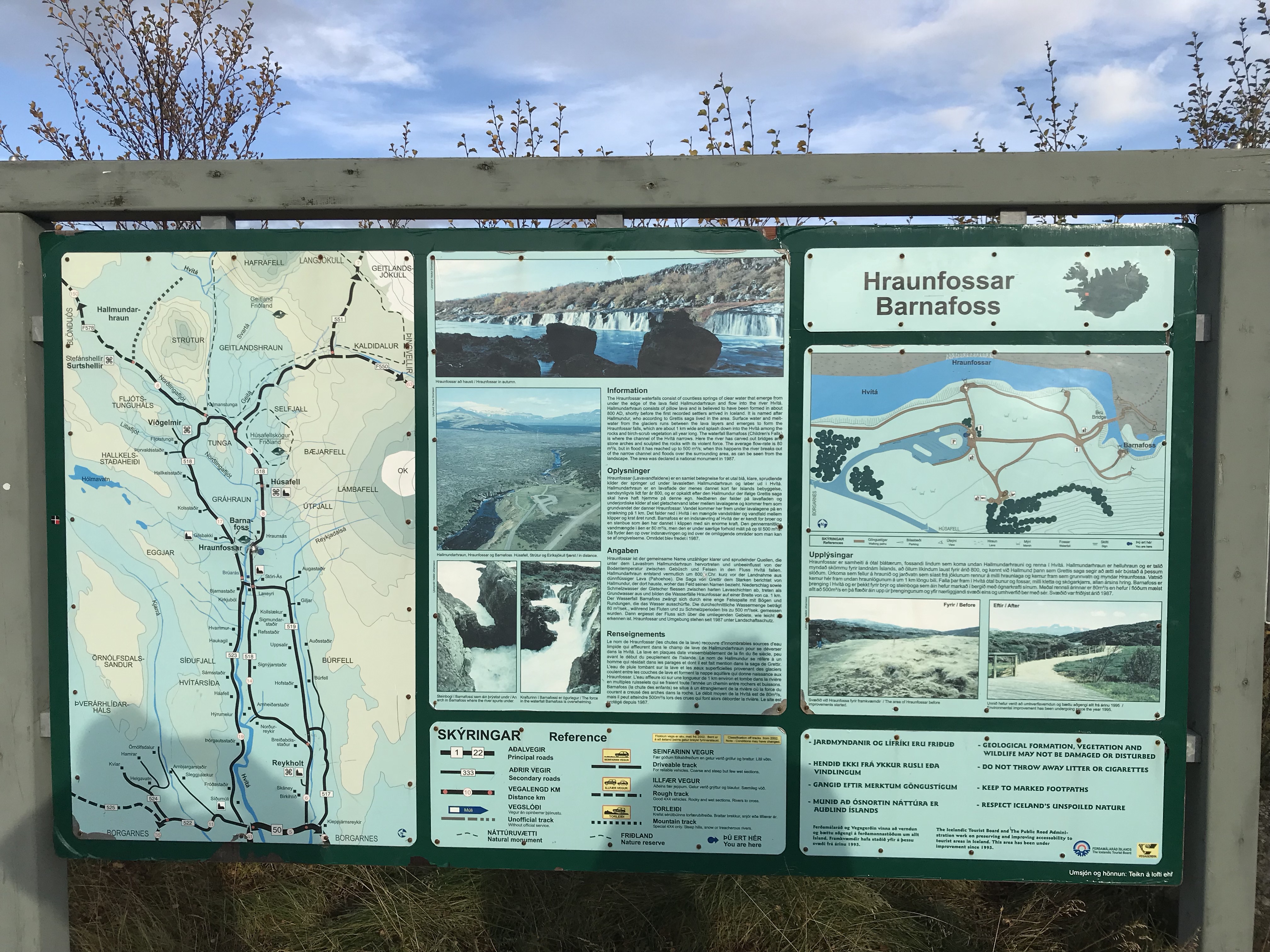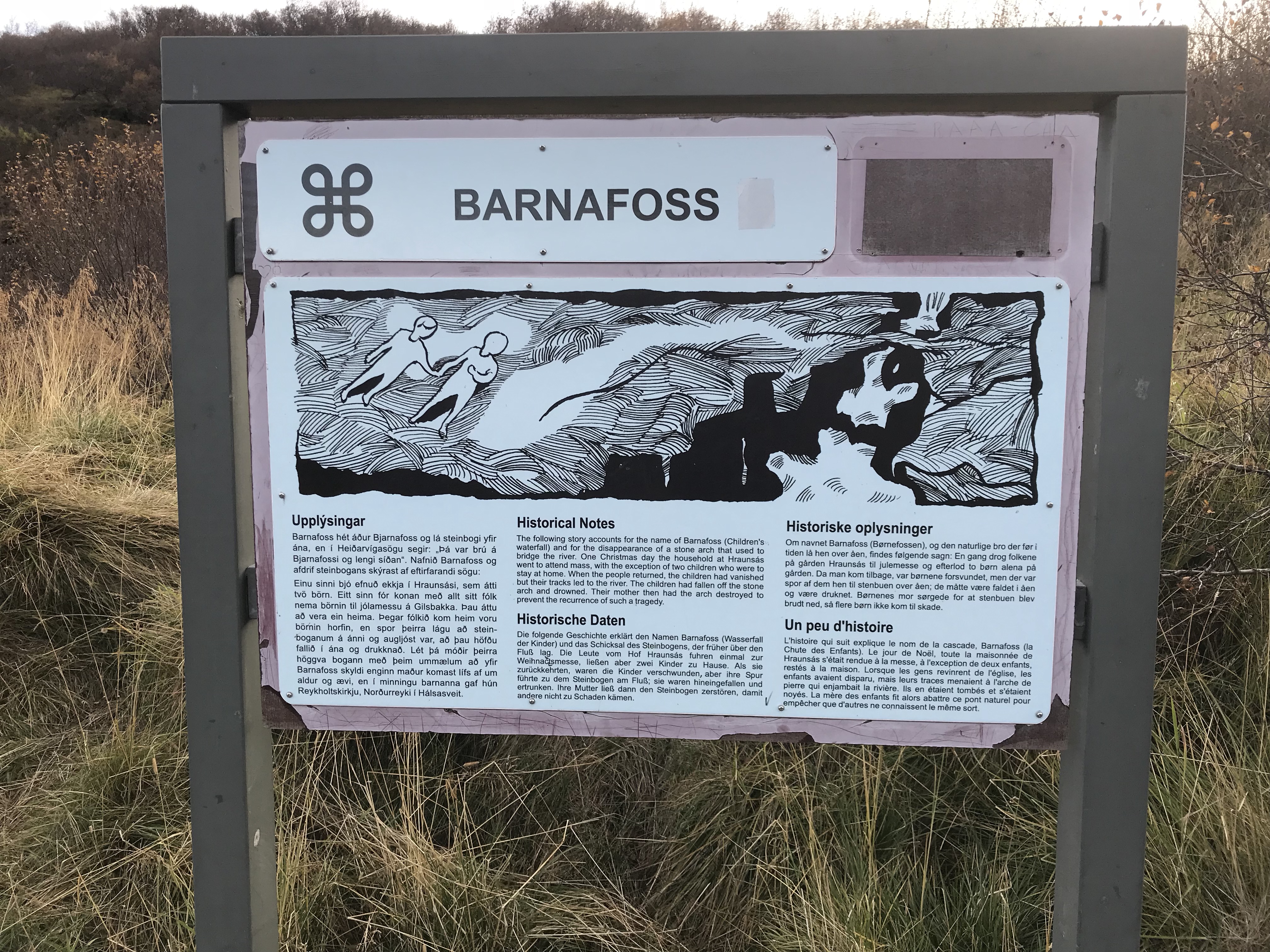 Barnafoss has a more tragic story as it translates to children’s falls.  The legend has it and hat on Christmas Eve, two kids vanished over the stove arch that built a narural bridge across the river. Their mother in her grief, ordered the bridge demolished.