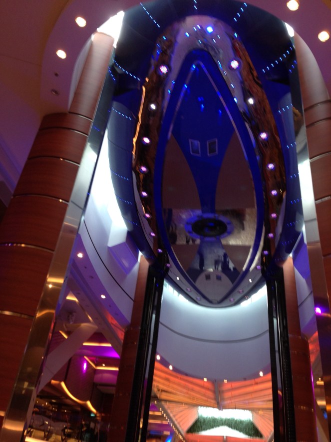 The ship happens to feature my favorite musical Mamma Mia with music by ABBA. In addition to hosting 6000 guests on a ship with its own outdoor garden a Central Park Area (pictured above) the vessel features an ice rink, two surf simulators called flow rider and the rising tides bar that floated between decks 5 and 10.