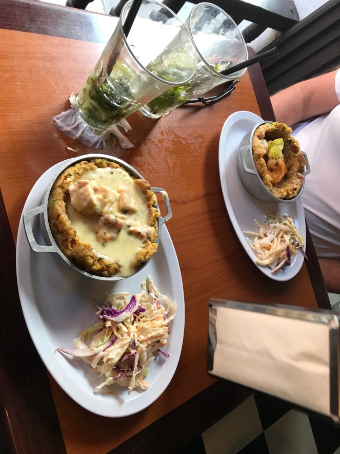 Both were increadibly delicious. Mine was chicken in white sauce and Jerry’s was shrimp with garlic. Accompanied by world class mojito’s, we had a great time.