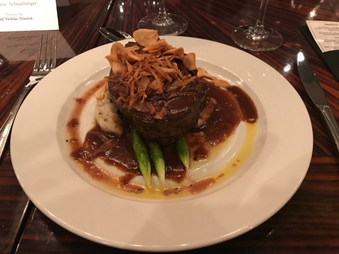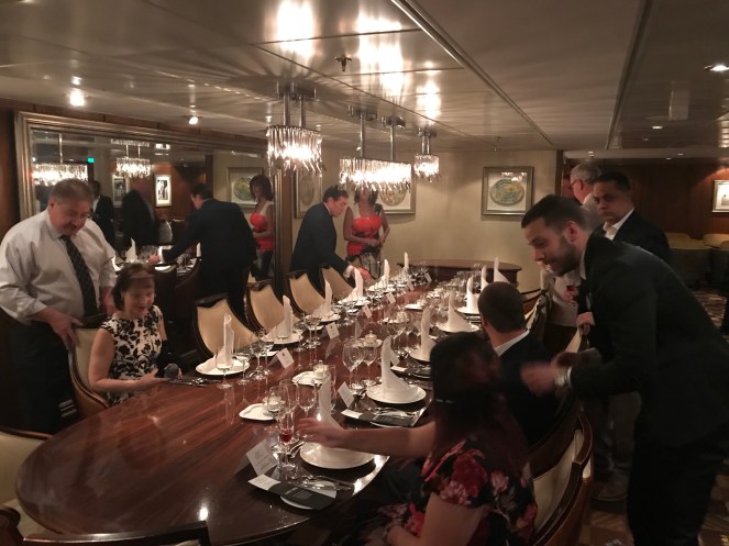 All dressed up, Jerry and I joined 11 other guests for the very exclusive Chef’s Table on deck 11. It turned out that 6 guests were from California which made for great conversation. This optional 5 course meal comes with a sommeliers selection of paired wines. It was the highlight meal of the cruise – If your ship offers it, I highly recommend signing up for it in advance as it does sell out.