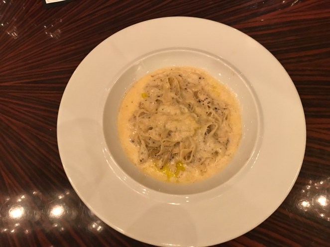 Main course for most was a beautiful Angus fillet of beef with truffles linguine as a side plate. This course came paired with a Honig 2014 Cabernet Sauvignon. It was heaven!