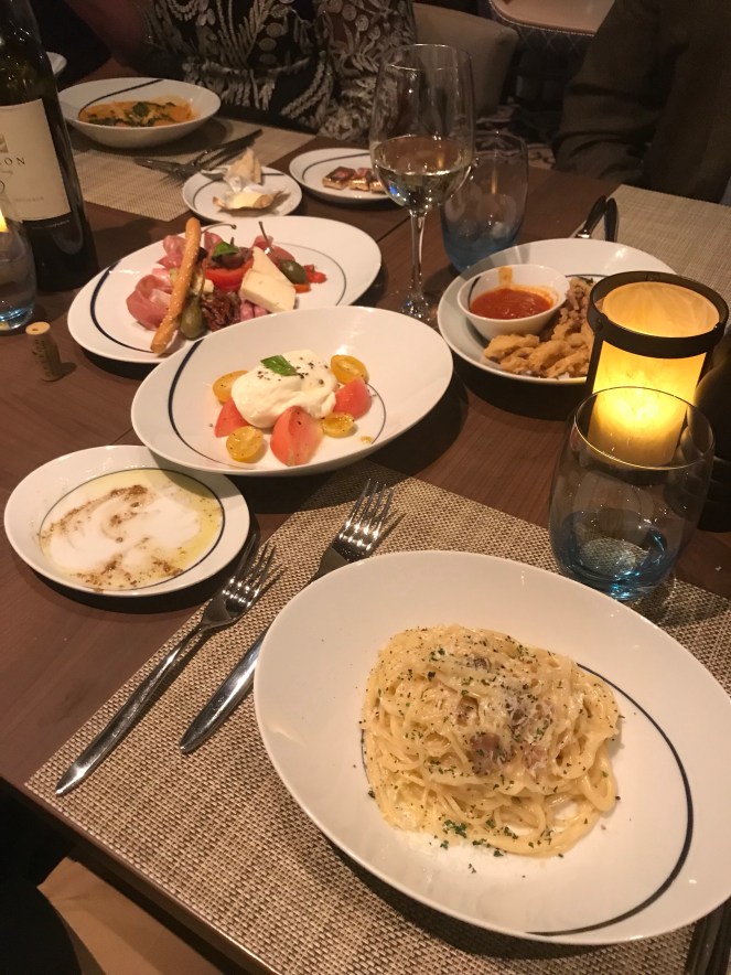 A first night aboard wrapped up I can now report that the meals so far have been above standard for this cruise category. Our small group dinner at Cucina last night was fantastic with truly one of my life’s best veal osso buco’s ever.