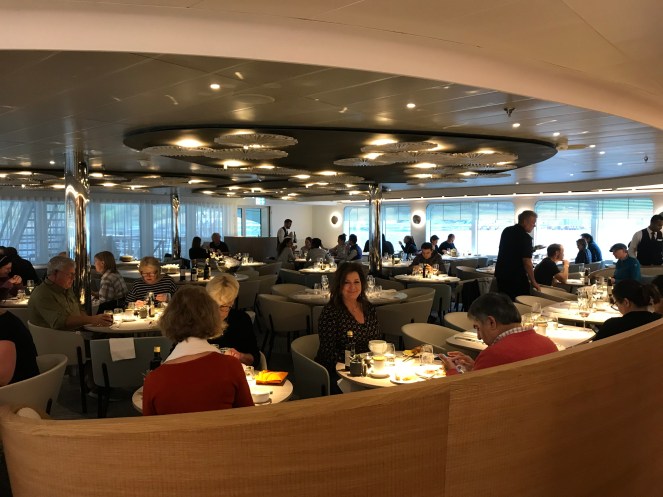 Then there is the gorgeous dining room on deck 4 which creates a cozy venue for exquisite meals and other gatherings. Breakfast and lunch are always buffet with a small menu of mains served table side while dinner is sit down service.