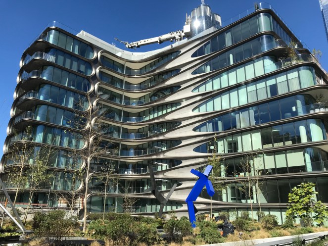 One of the stunning new additions t the High Line Skyline is the late Zaha Hadid designed condo building with all its lovely rounded edges.