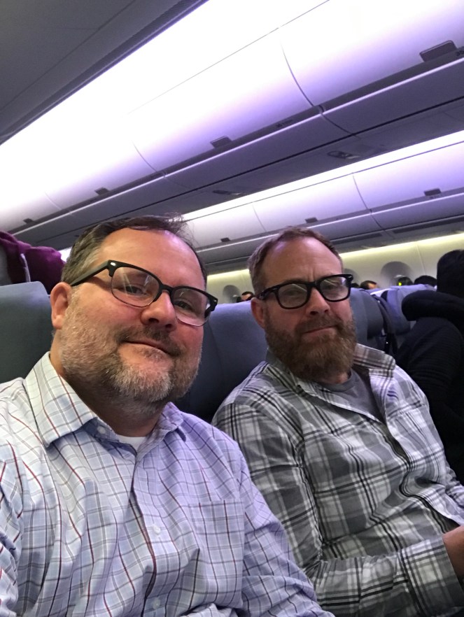Our journey began with a rainy BART ride to San Francisco’s international terminal. A brand-new Twin engine Airbus 350-900 ultra long range from Singapore airlines waited for us.
