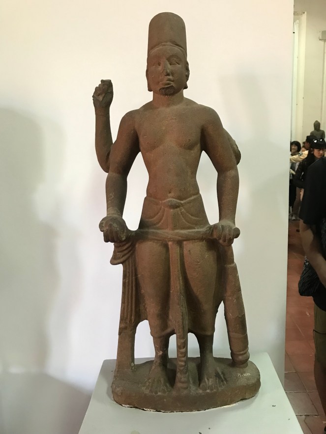 The Royal palace is still the formal home of the Cambodian king and sections are open to the public. We toured the coronation hall and the silver pagoda (no photos allowed) and then walked through town to the national museum where many of the Angkor Wat era relics are being restored.
