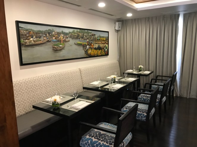 After our morning tour, we returned to the harbor for a private tour of Avalon’snew ship the RV Saigon. Built exactly the same way as our ship, she features a better laid out outdoor deck and a color scheme in blues which I found very attractive.