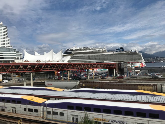 A short metro ride to the Wayerfront station got us to Canada Place – Vancouver Cruise Port – where the Joy was waiting for us. Towering over the skyline, this latest of Norwegian’s vessels made quite the statement. She happened to be the largest passenger ship to ever call on this majestic port.