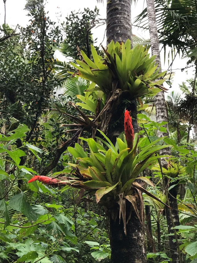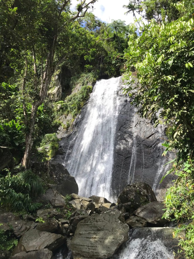 once settled in, We drove out of town to the National Forrest of El Yunque which is a stunningly lush rainforest draped over mountain peaks. It’s funny what rain does – greenery in every shade light up the hillsides and the canopy provides shade from the hot sun or rain – we had both.