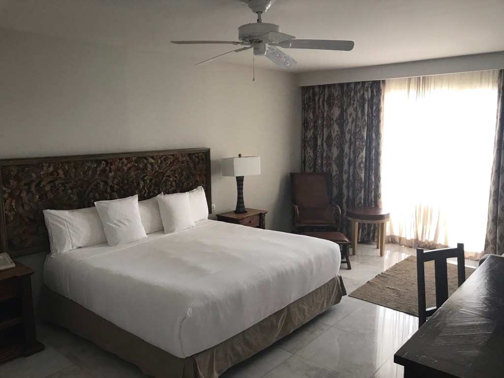 The first two days hours in Puerto Vallarta were overcast with a marine layer that finally burned off just in time for a break by the pool today. This mid-market beachfront property features 452 rooms with varying views (garden to pool to ocean) and tops out with its Presidential Suite which I was fortunate to inspect in company of property sales manager Landry. Overall a good value for guests, Iberostar attracts an international clientele