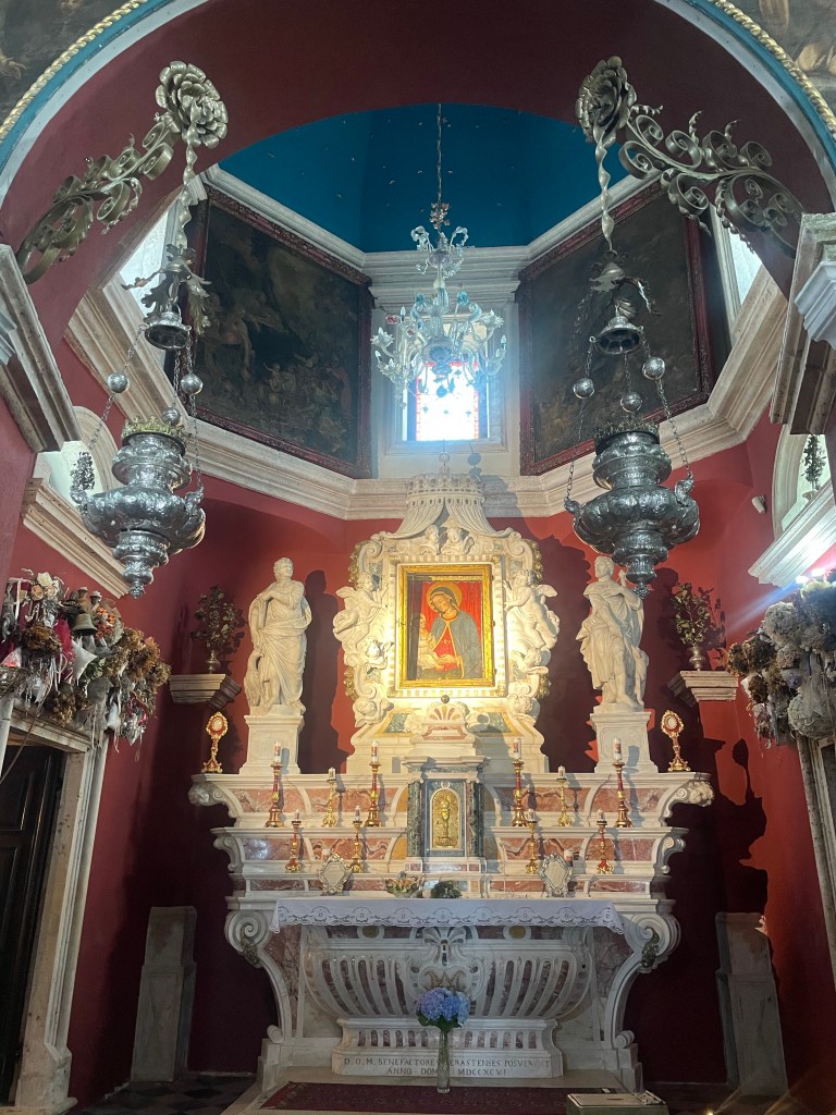 Expertly guided by our local hero Duca, we learned about the fascinating history of this place which makes even self-professed atheists like me connect with this place in spirit. Built one rock throw at a time, the entire population around Boka bay supported two local boys from Perast whom had found an “IcON” perched on a rock in that very location on the 22nd of July 1456.
