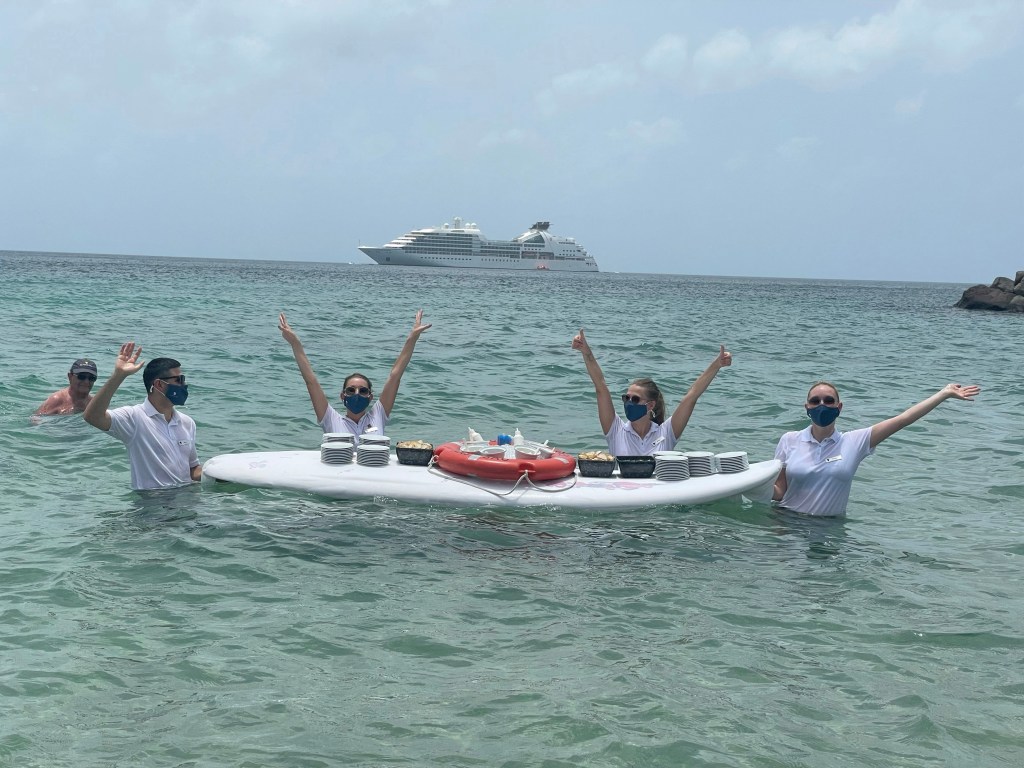 This is a Seabourn tradition on every sailing – weather permitting – the crew serves champagne and caviar on a surfboard in the ocean. This is truly one of those moments that changes travel profoundly. It’s hard to go back to anything less from here on out.