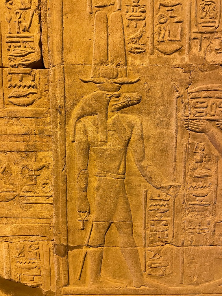 This temple sits on an S curved bend in the Nile on a sandy island which used to be home to the Nile crocodiles. Revered for its virility and endurance, the god Sobek brought fertility to the land. As the “Lord of the Waters” he was thought to have risen from the primeval waters of Nun to create the world and made the Nile from his sweat. One creation myth stated that Sobek laid eggs on the bank of the waters of Nun, thus creating the world.
