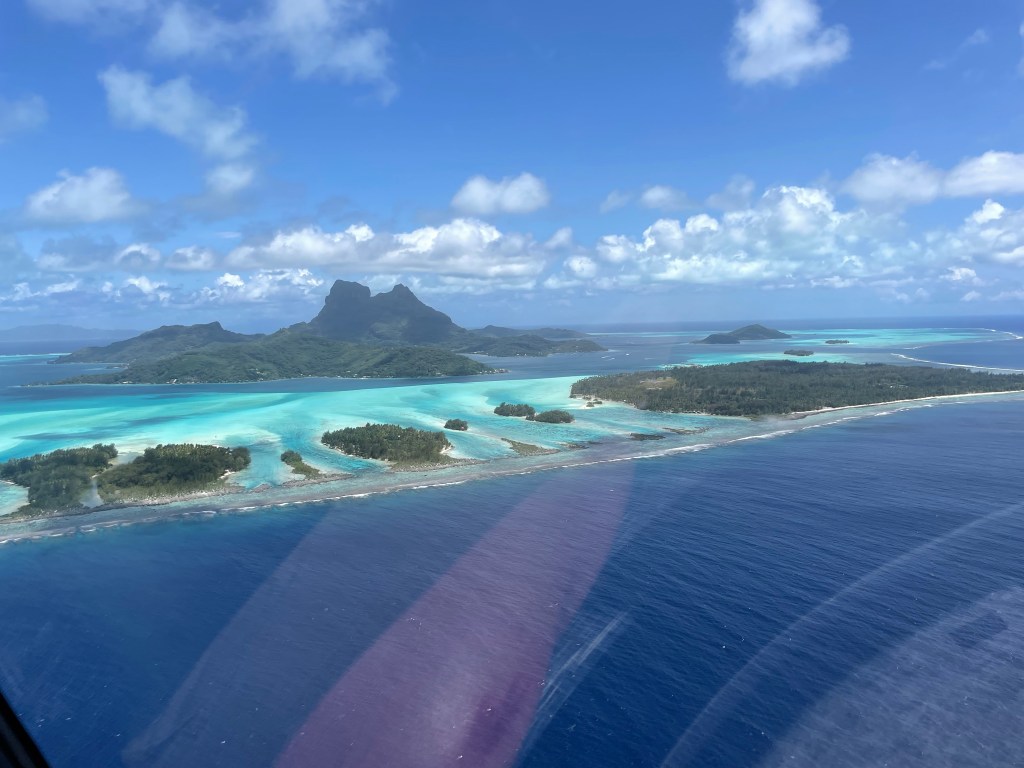 On our way back from the remote atoll, our pilot flew loops above our Windstar ship Star Breeze and then swung over the outer atoll along the coast and straight over the legendary Conrad Bora Bora. Stay tuned for a bonus blog in the coming days on the property.