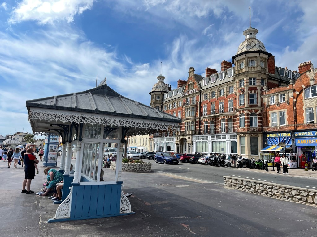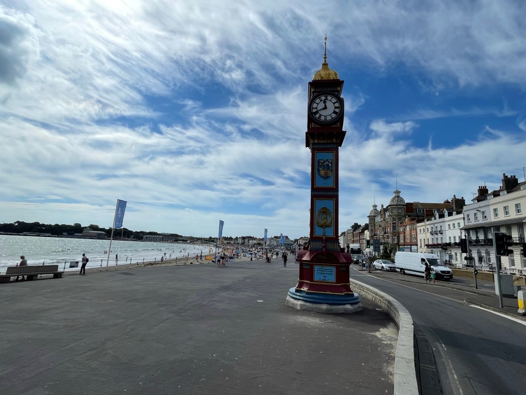 What makes Weymouth so charming is the architecture of old style mansions and grand hotels – this one needs some TLC as I could see. Nevertheless, the matching bus stop and Queen Victoria clock tower pay homage to a past era of British empire glory. It made for an enjoyable few hours of exploring and 15k steps.