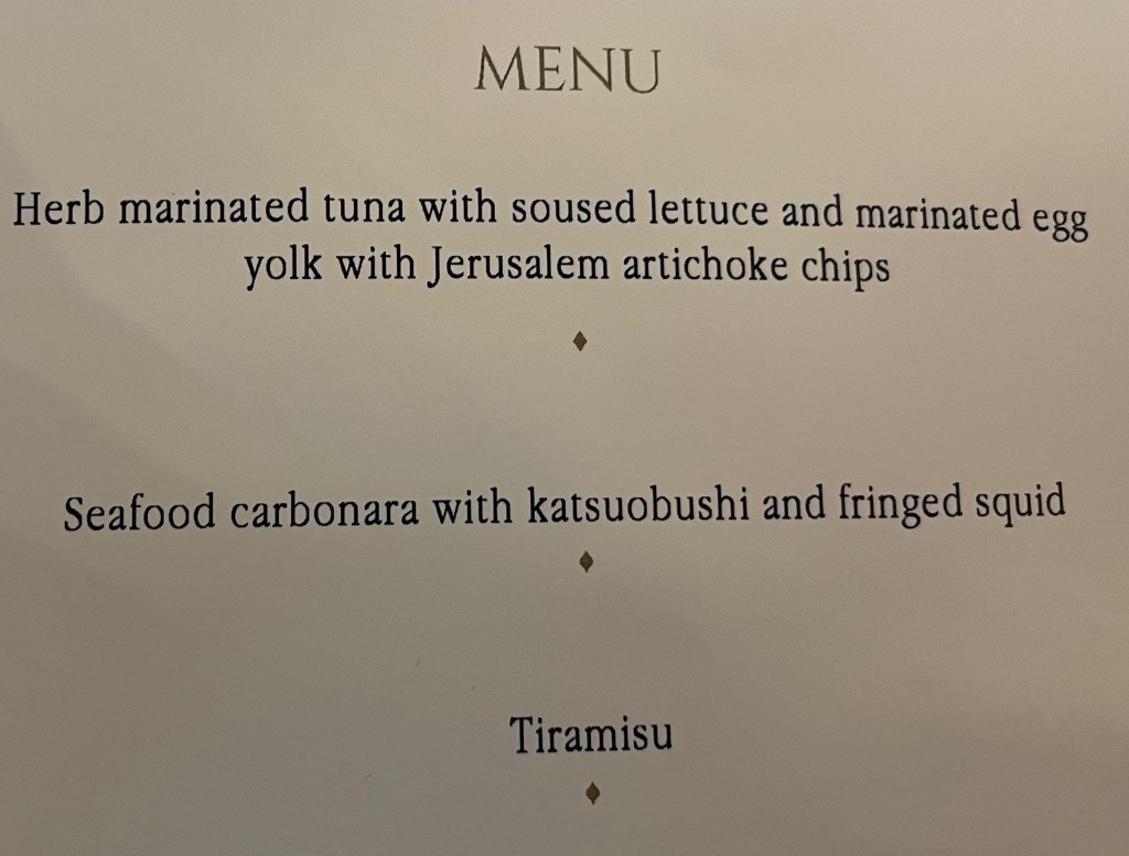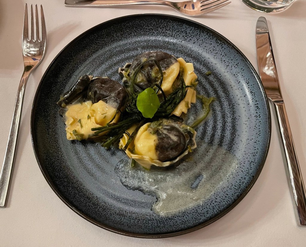 What makes a Michelin star experience? It’s in the details of chilled tuna over room temperature romaine lettuce and freshly fried artichoke. The taste and combination of flavors was refined and exquisite in every bite. The dish was paired with a Venetian region white wine that was crisp with the right hint of acidity and fruit.