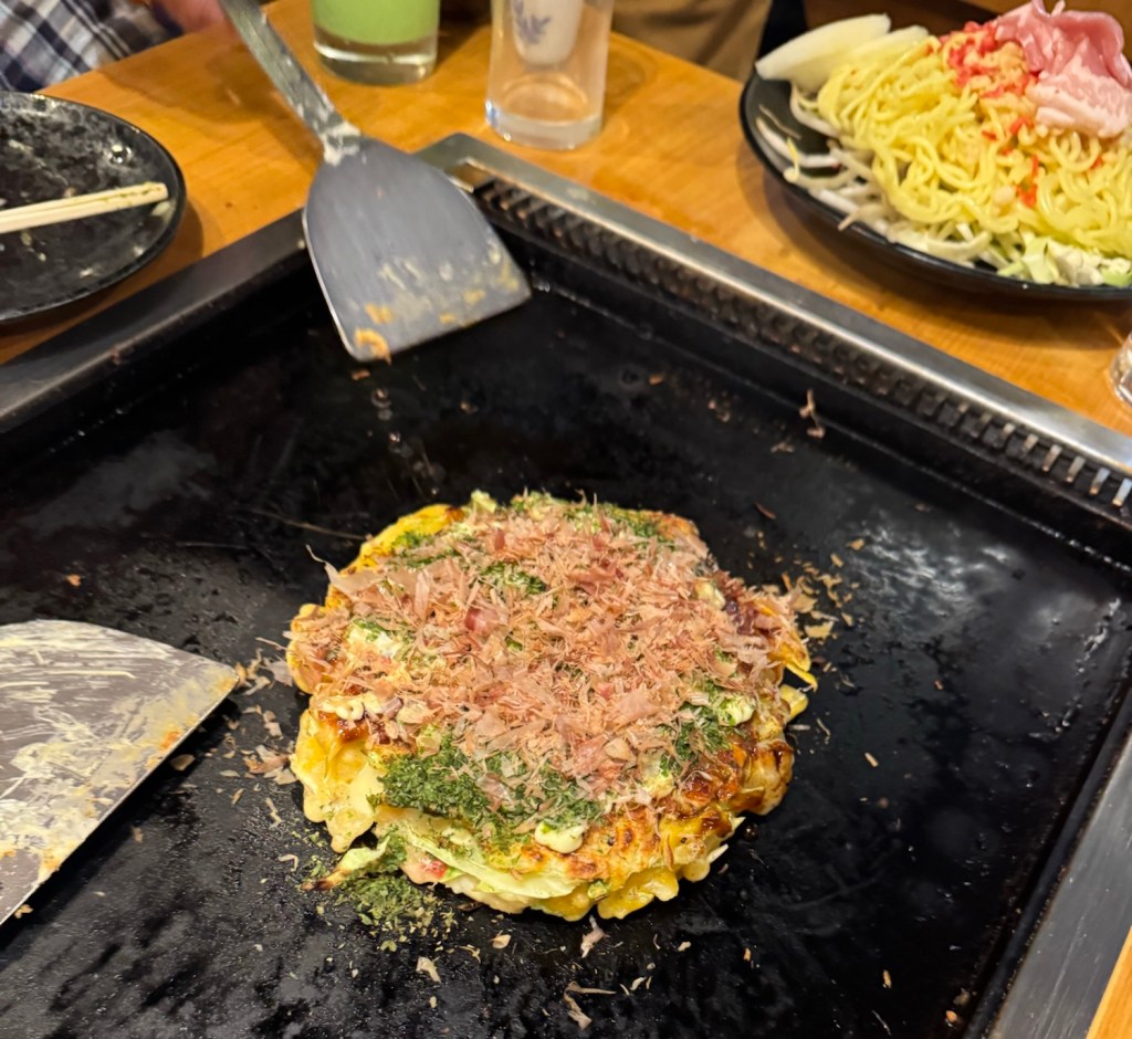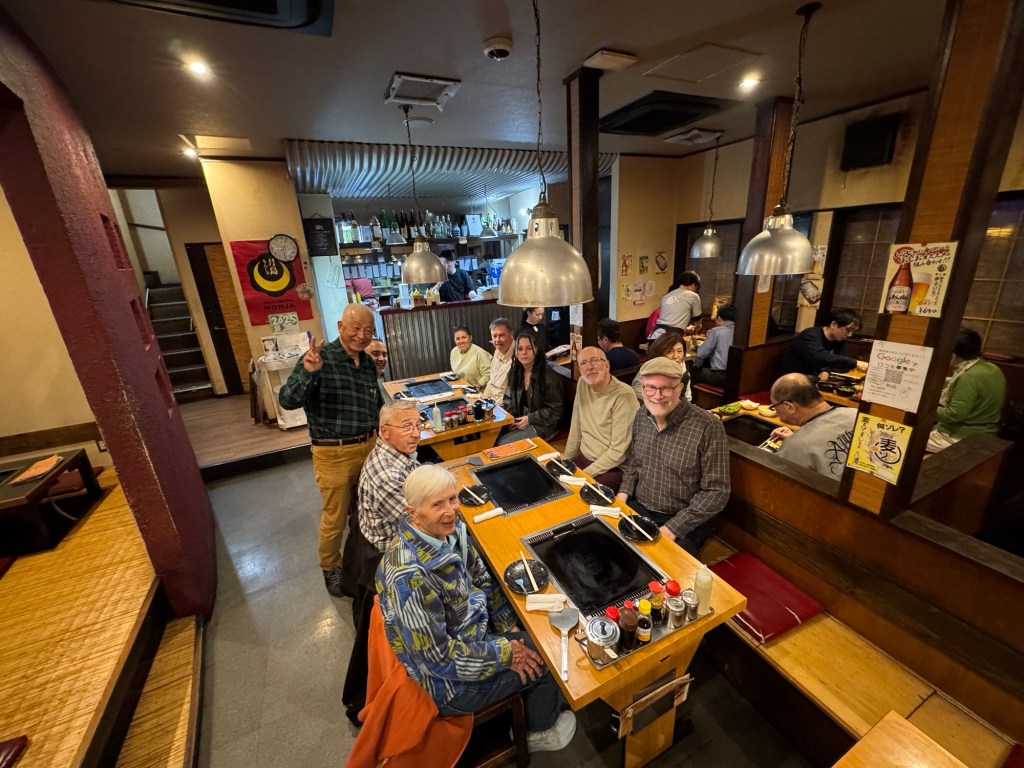 We stopped at several key places, from the Japanese deli area 2 floors below ground at Mitsukoshi, to a yakitori skewer place and a local hot plate restaurant where multiple self-cooked tableside dishes were created by us.