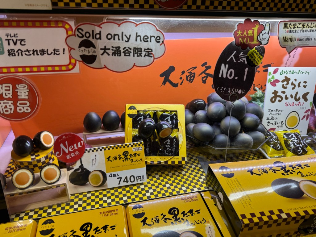 This was followed by a climb on the ropeway in 18-passenger capsules to the top station at Owakudani where we tasted the famed “black eggs”.