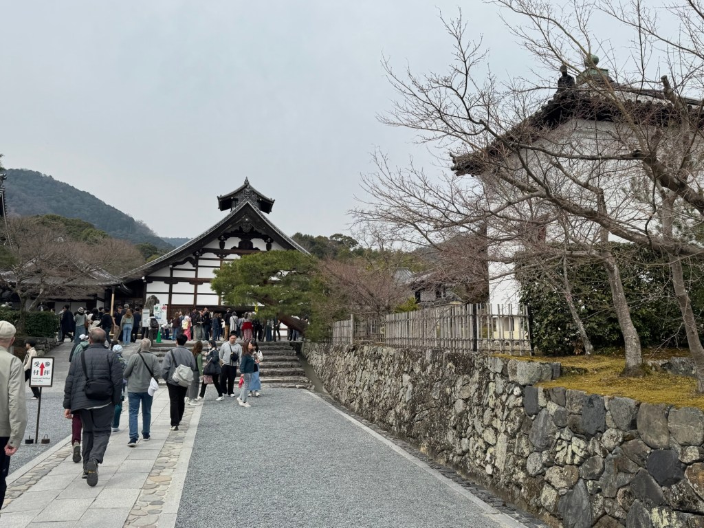 After crossing the Moon bridge, we walked through the streets of Kyoto to the Tenryu-ji Tempke with its UNESCO Zen garden and giant bamboo forest. The meticulously arranged garden and pond area is a masterful example of the patience and perseverance Japanese clothes for its interactions with nature. Every detail has its purpose and tge scale is critical.