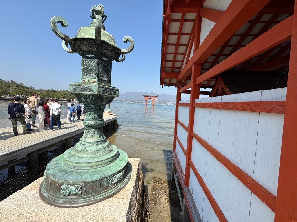 After a fun lunch of local specialties, we continued our exploration of the town by taking the tram line to the outskirts of town before catching a ferry to cross over to Itsukushima island and its famous namesake shrine. The ferry ride took us past the famous Torii gate in the water in direct axis to the temple.
