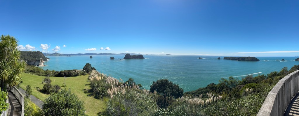Road closures due to the recent storm notwithstanding, I reached this little slice of heaven called Hahei on the Pacific side of the Coromandel peninsula. To control the inevitable masses of tourists, the city imposes a bus system that all visitors must use. It’s an efficient system that feeds the impeccable trail of 40 min with folks in 10 minute intervals.